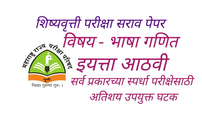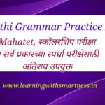 मराठी व्याकरण सराव प्रश्नपत्रिका(MahaTET, Scholarship Exam, इयत्ता ५ वी ते १० वी व सर्व स्पर्धा परीक्षांसाठी उपयुक्त)सूचना :प्रत्येक प्रश्नाला दिलेल्या पर्यायांपैकी योग्य पर्याय निवडा.सर्व प्रश्न समान गुणांचे आहेत.प्रश्न :1)नदी, डोंगर, प्राणी, पक्षी या शब्द गटातील शब्द ओळखा.A) हिमालयB) सह्याद्रीC) अरवलीD) समुद्र2)श्रीमंती, गरिबी, सुंदरता, चातुर्य या शब्द गटासाठी योग्य शब्द ओळखा.A) छानB) गोडC) माधुर्यD) कुरूप3)जेव्हा दोन…