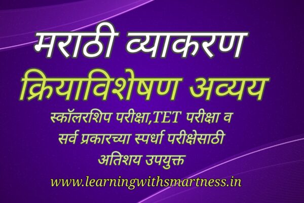 मराठी व्याकरण क्रियाविशेषण अव्यय लिंग, वचन किंवा विभक्ती यांमुळे त्या शब्दांच्या रूपात बदल होत नाही. याला व्याकरणात अविकारी शब्द म्हणतात. यांनाच अव्यये (न बदलणारी) म्हणतात. अविकारी शब्द (अव्यये) : 1) क्रियाविशेषण अव्यये2) शब्दयोगी अव्यये3) उभयान्वयी अव्यये4) केवलप्रयोगी अव्यये 1) क्रियाविशेषण अव्यये :क्रियापदाबद्दल विशेष माहिती सांगून जी अविकारी राहतात त्यांना क्रियाविशेषण अव्यये म्हणतात.उदा. महेश मोठ्याने बोलतो. राधा…
