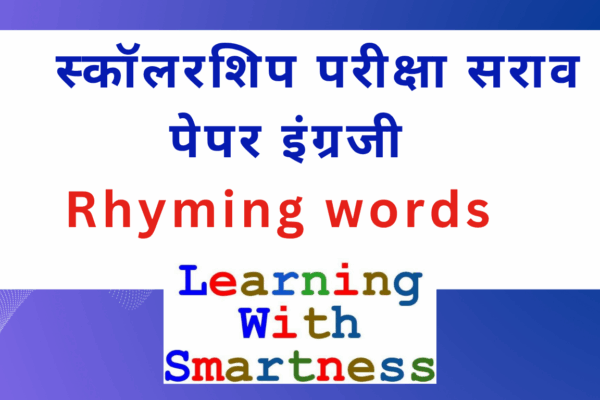 Rhyming words Test Scholarship Exam Loading… www.learningwithsmartness.inScholarship Exam Sub – English Unit- Rhyming words Marks 60Q1. Pick out the odd rhyming word.(a) Rat (b) Cat (c) Bat (d) WallQ2. Choose the proper pair of rhyming words.(a) Fish — Dish (b) Spoon — Gone (c) Book — Know (d) Ice — SinQ3. Choose the word that rhymes with ‘wish’.(a) Push (b) Dish (c)…