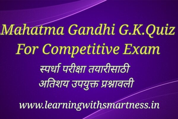 Mahatma Gandhi General Knowledge Competition  महात्मा गांधी यांच्या जयंतीनिमित्त आयोजित प्रश्नमंजुषा Loading… 2 ऑक्टोबर हा दिवस भारतात ‘महात्मा गांधी जयंती ‘म्हणून साजरा केला जातो तर जगभर कोणता दिन म्हणून साजरा केला जातो? असहकार व अहिंसा या तत्वावर आधारित सत्याग्रहाचा उपयोग महात्मा गांधीजींनी सर्वप्रथम कोठे केला? …. या ठिकाणी महात्मा गांधीजींनी पहिले भाषण केले. महात्मा गांधीजींनी…