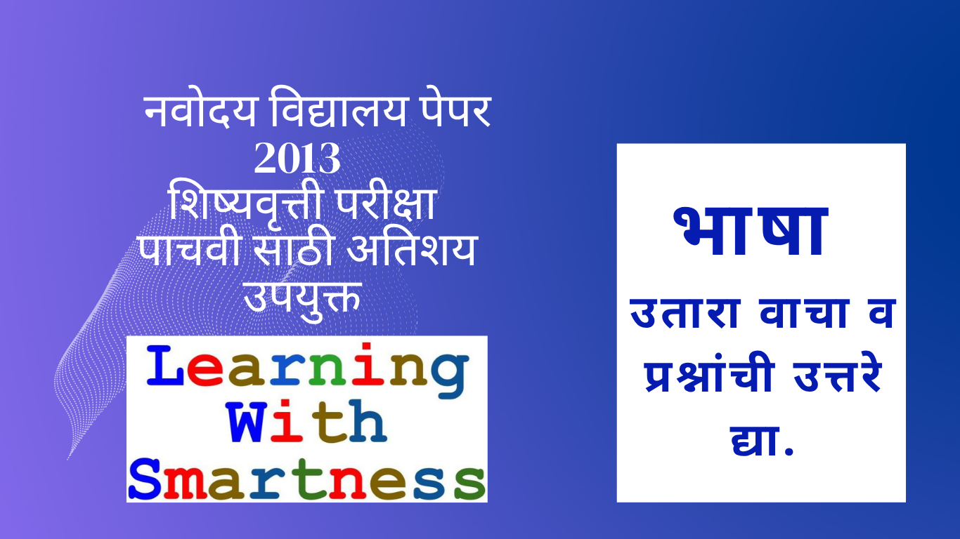 नवोदय विद्यालय पेपर 2013 भाषा उताऱ्यावर आधारित प्रश्न